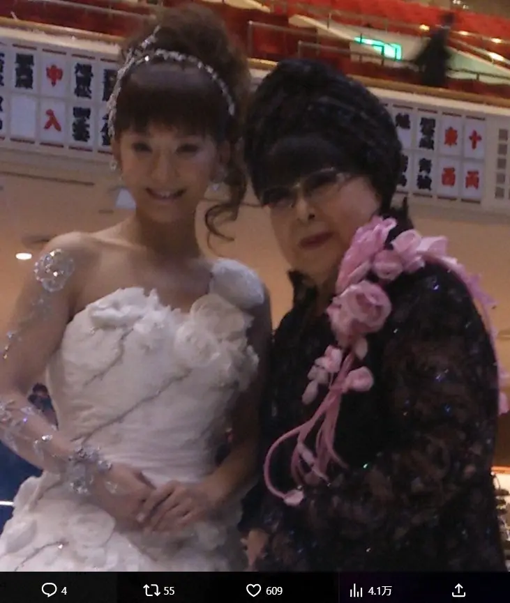 「桂由美先生が、あなたが結婚する時は、わたくしがあなただけのウェディングドレスをおつくり致しましょう。そうおっしゃってくださった事、今でも忘れません」とつづり、「とてもお優しくてお話しさせて頂くたびに心があたたかくなって優しい笑顔と優しさ溢れる安心の気持ちにさせてくださる桂由美先生でした。桂由美先生様ご冥福をお祈り致します。永遠のウェディングドレスの神様の桂由美先生ありがとうございました」と思いを込めた。