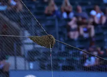 ドジャース・大谷翔平投手も「2番・DH」で出場した一戦は、思わぬ珍客の襲来によって試合開始が遅れることになった。場内でも「ハチに気をつけてください」などとアナウンス。試合前練習の際にはハチは群れをなしていなかったが、試合開始直前に集まってきたという。ベンチでは大谷翔平や山本由伸がハチの大群を興味深く見つめる様子も映し出された。