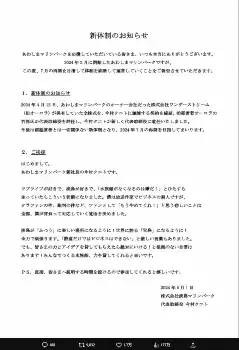 今村氏はXを通じてあいさつし、「はじめまして。あわしまマリンパーク新社長の今村クニトです。ラブライブが好きで、淡島が好きで、『水族館がなくなるのは嫌だ!』とひたすら走っていたらこういう状態になりました。僕は放送作家でビジネスの素人ですが、クラファンの件、裁判の件など、ファンとして『もうやめてくれ!』と思う悲しいことは全部、僕が背負って対応していく覚悟を決めました」と決断の経緯を説明。
