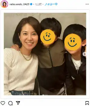 フジテレビの遠藤玲子アナウンサーが3日までに自身のインスタグラムを更新。42歳の誕生日を迎え、息子たちとの家族ショットを公開した。