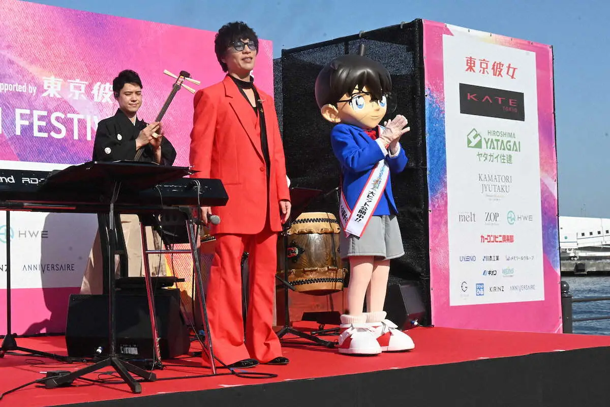 アニメ「名探偵コナン」劇場版の音楽を担当する作曲家の菅野祐悟氏によるメインテーマの生演奏とともに、江戸川コナン君が冒頭でステージに登壇した。