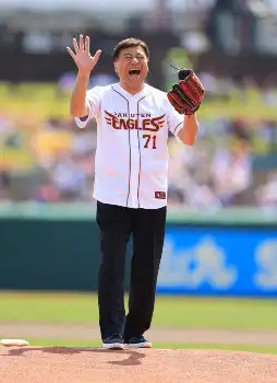 「シーデー、デーブイデー」「安い、安~い」のCMでおなじみ、「夢グループ」の石田重廣社長(65)が5日、楽天-ロッテ戦(楽天モバイル)で始球式に登場した。