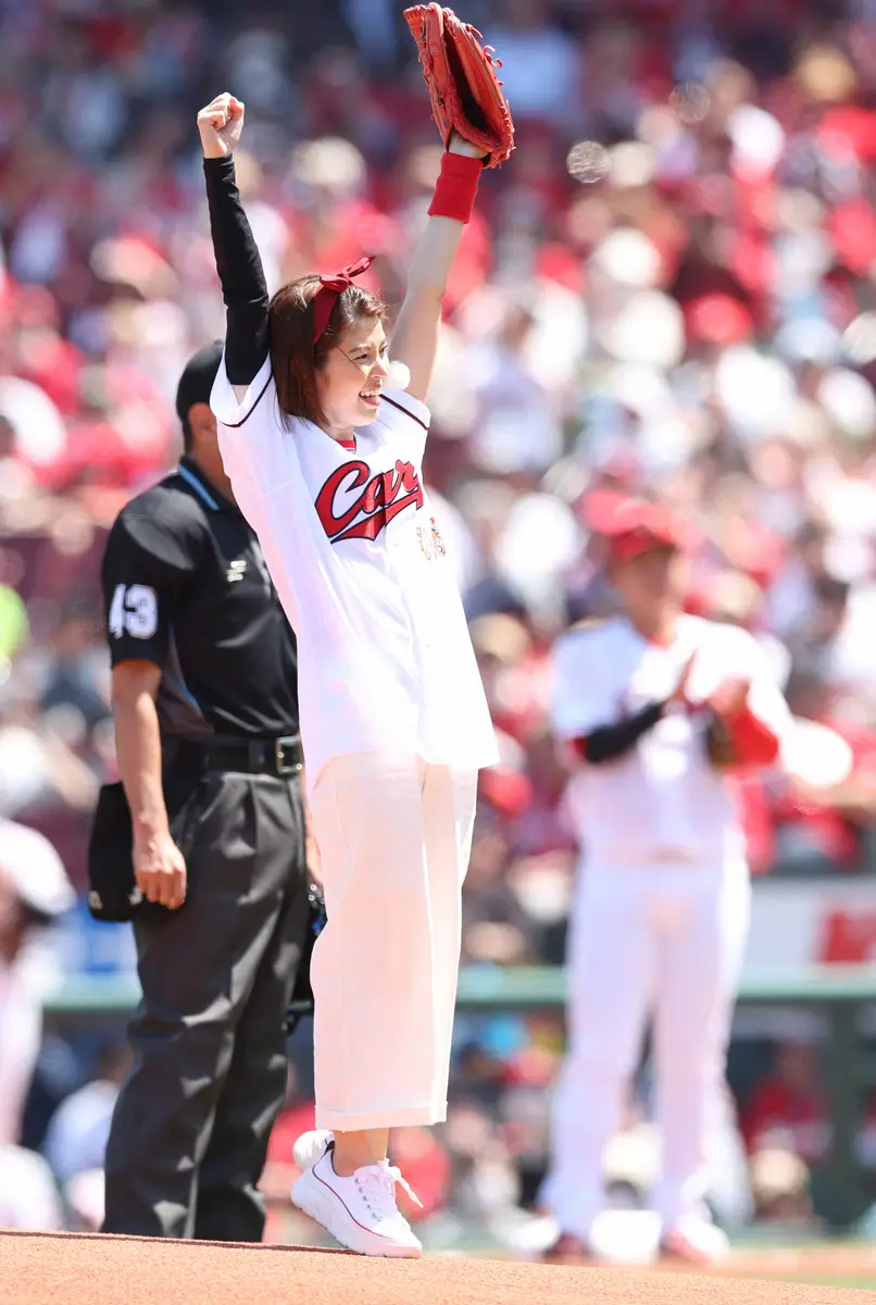 神田愛花 マツダスタジアムで始球式後、サインをもらったのは“旬の選手”ではなく「黄金バッテリー」