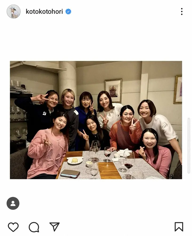 堀琴音 「メンバー豪華」レジェンド&現役人気女子プロゴルファーらの食事会ショット「楽しい夜でした」