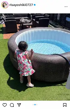 吉木も「我が家、プール開きしました」とつづり、愛娘とのツーショットなどど、テラスに設置した自宅のプールの写真を公開した。