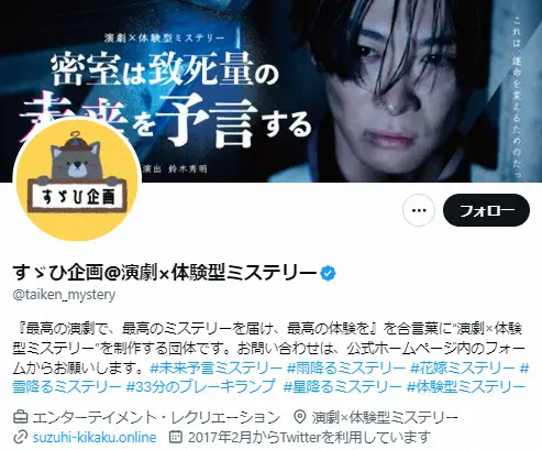 すゞひ企画@演劇×体験型ミステリー公式X(@taiken_mystery)から
