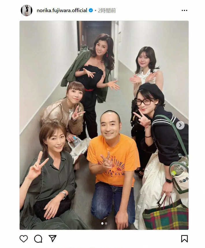 藤原は「″メイジ・ザ・キャッツアイ″の脚本を担当してくださいました岩崎う大(かもめんたる)さんの出演していた舞台 ″鴨川ホルモー、ワンスモア″を気の合う仲間で観に行ったときのいつぞや思い出写真」とつづり、女優の高島礼子、剛力彩芽、美弥るりか、元AKB48でタレントの市川美織との写真を投稿した。
