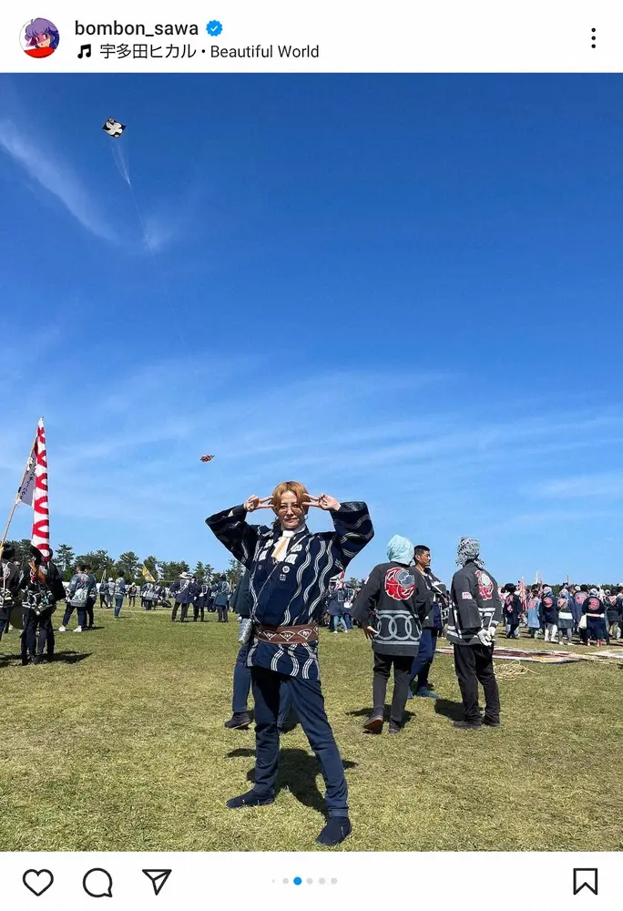 鈴木は「天気良すぎて!!やや二日酔いの脳天に太陽フレアが降り注いでました」とコメント。「風もほとんど吹いてなくて、凧の上がりも例年より少なかったですね」と伝えた。