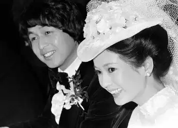 77年、五十嵐淳子(右)と結婚式を挙げた中村雅俊