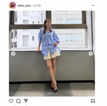ABEMA人気女子アナ 白T&ベージュのミニスカートS!「いつ見ても綺麗!」「ミニスカ似合う!」の声