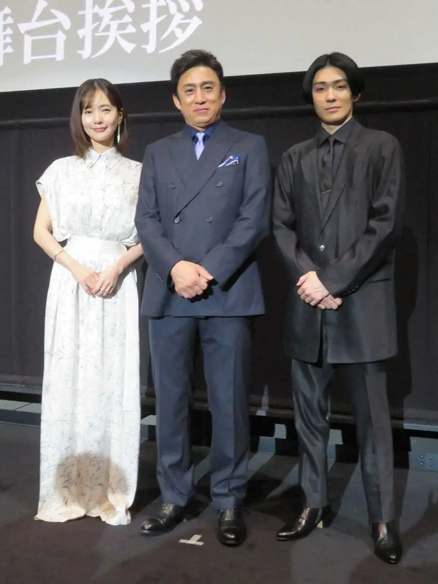 歌舞伎俳優の松本幸四郎(51)、市川染五郎(19)親子が11日、俳優・中村ゆり(42)と大阪市内で劇場版「鬼平犯科帳 血闘」(監督山下智彦)の公開記念舞台あいさつを行った。
