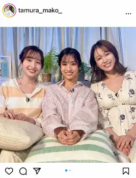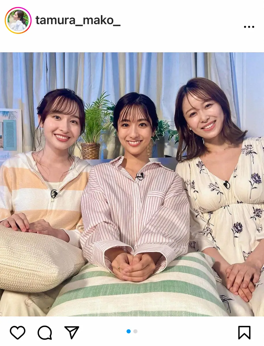 田村真子&宇賀神メグ&良原安美 TBS同期アナパジャマ姿のスリーショット公開に「めっちゃ素敵」
