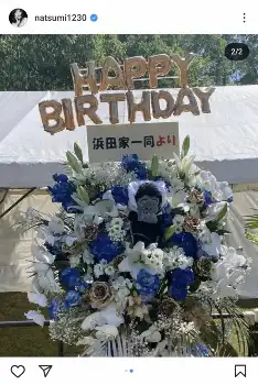 「浜田家一同より」と書かれた花の写真も投稿した。