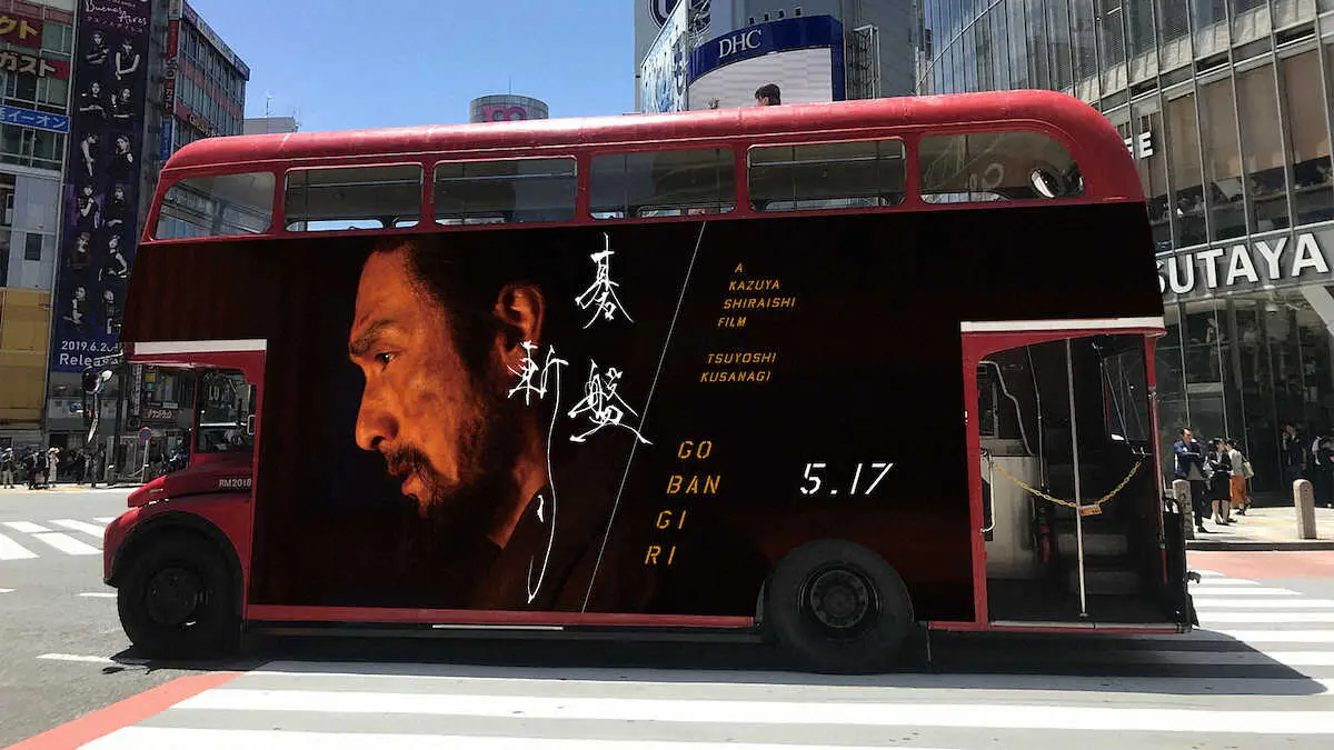 俳優の草なぎ剛(49)が主演を務める映画「碁盤斬り」が17日に公開するのに合わせ、映画のビジュアルをラッピングした2階建てのロンドンバスが都内を周遊する。