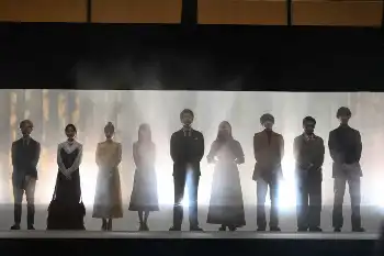主役を務めた大泉とともに、菅野美穂、福本莉子、川栄李奈、松村北斗をはじめとした、豪華キャスト総勢9名が登壇した。