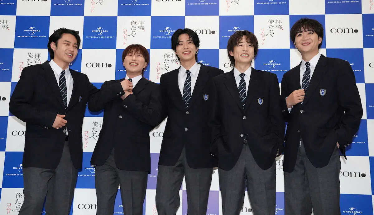 フォトセッションで笑顔のコムドット(左から)ひゅうが、あむぎり、やまと、ゆうた、ゆうま(撮影・沢田 明徳) Photo by スポニチ コムドット「5大ドームでライブをしたい」5人での万感歌手デビュー会見で… ギャラリーで見る この記事のフォト 2024年05月14日の画像一覧 もっと見る 2024年05月14日の画像をもっと見る