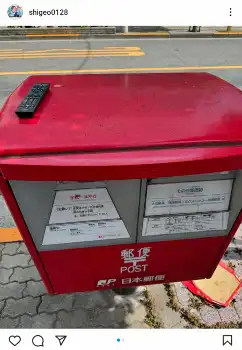 郵便ポストの上に置かれたテレビのリモコンの写真を掲載した。