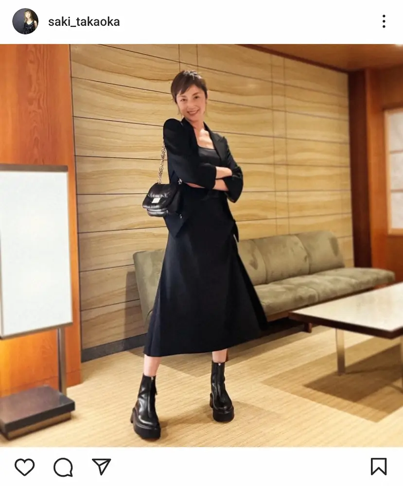 高岡早紀 まとめ髪&ブーツのブラックコーデに「スタイル良すぎ」「撃沈です」「美人の見本」の声