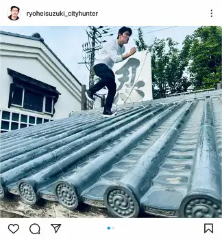 鈴木は「屋根の上の忍者」とコメント。瓦屋根を模したフォトスポットで、真剣な表情で忍者の走法"ナンバ走り"をする様子を公開した。
