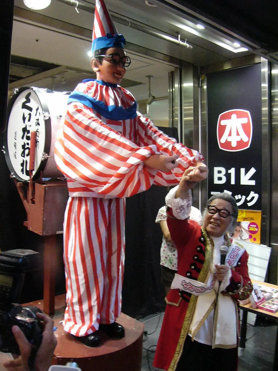 08年、くいだおれ次郎とがっちり握手するキダ・タロー氏