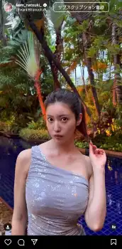 「バンコクは蒸し暑くて前髪がすぐ崩れてしまうので、やむなくオールバック。日本ではしないスタイルだけど、意外とイケてるのでは?と自画自 ZARAで昨年購入したワンショルダーのドレスを着たよ」などとつづり、プールサイドでのワンショルダードレス姿の写真をアップした。