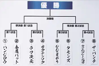 「THE SECOND~漫才トーナメント~2024」グランプリファイナルトーナメント表(C)フジテレビ Photo by 提供写真 THE SECOND4強決定 金属バット、ガクテンソク、タモンズ、ザ・パンチが1… ギャラリーで見る この記事のフォト 2024年05月18日の画像一覧 もっと見る 2024年05月18日の画像をもっと見る