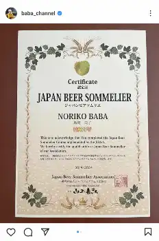 「結局はただの『呑ムリエ』ですが」とつづると、ハッシュタグでは「ジャパンビアソムリエ」「ビール検定2級」「ワインエキスパート」「馬場典子」「ばばちゃんネル」と添えた。