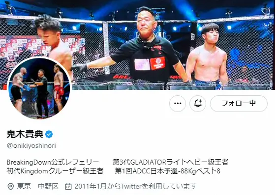 格闘技イベント「BreakingDown」で公式レフェリーを務める鬼木貴典氏が19日までに自身のX(旧ツイッター)を更新。ステージ4のがんと診断され、次回大会を辞退することを明らかにした。