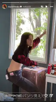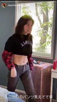 仲はデニムのパンツにクロップド丈のトップス姿で、大胆にお腹を出したコーデの動画を投稿。