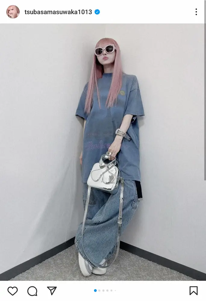 益若は「普段はダルダルもよく着ます」とコメント。「古着みたいなトップスがBALENCIAGAでボトムスGUだったので、友達に『もう何を着ているのか何が高いのか安いのかわからない』と言われました。笑」」とつづり、「これからも可愛いくて好きなものを着るぜ」と宣言した。