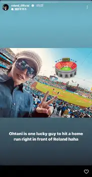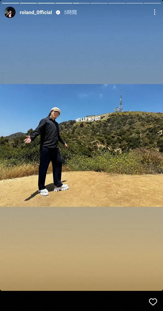 ローランドはストーリーズで、ハリウッドサインを背にした姿やドジャースタジアムを訪れた際の写真などを公開。球場での写真には「Otani is one luckey guy to hit a honme run right in front of Roland haha(=ローランドの前でホームランを打った大谷は幸せ者だ、ハハ)」とコメントした。