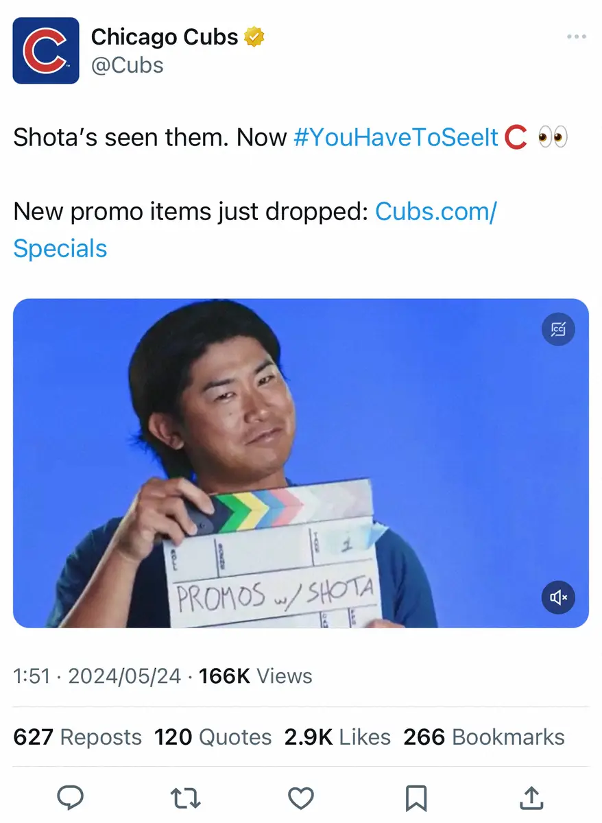 カブス公式X(@Cubs)から