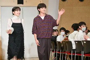 映画を見終わった直後の約200人の中学生の前に、永野と高橋文哉がサプライズで登場すると、会場は熱気に包まれた。生徒達は「きゃ~!」「カッコイイ!!」「芽郁ちゃん顔ちっちゃ!」と声を上げながら、2人へ熱い視線を向けていた。