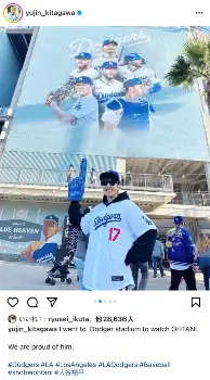 フォークデュオの「ゆず」北川悠仁(47)が26日までに自身のインスタグラムを更新。米ロサンゼルスのドジャースタジアムでドジャースの試合を観戦したことを報告した。