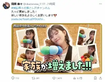 元AKB48で歌手・岡田奈々(26)が26日までに自身のYouTubeチャンネルを更新し“新しい家族”が増えたと報告した。