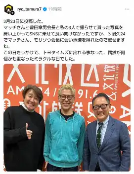 「ロンドンブーツ1号2号」の田村亮 Photo by スポニチ ロンブー田村亮、有名人2人との激レアショット披露が話題!「偶然が何個も… ギャラリーで見る この記事のフォト 2024年05月27日の画像一覧 もっと見る 2024年05月27日の画像をもっと見る