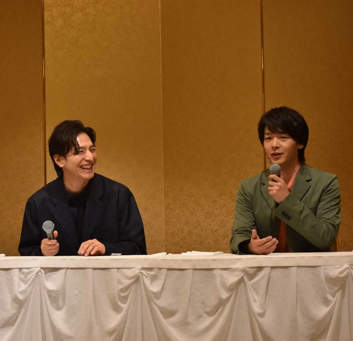 相棒のカイリを演じる中村倫也とは16年の舞台共演をきっかけに、ゴルフや食事など親交がある。ファンからは両者の名前の頭文字を取った「TTコンビ」と呼ばれている。息はぴったりだ。会見で自身のヒュウガと似ている部分を聞かれた生田が答えに窮していると、中村が横で「顔が美しいところ」と“ささやき”。その通り答えると、中村から「ふぅっ!」と冷やかされて笑いを誘った。