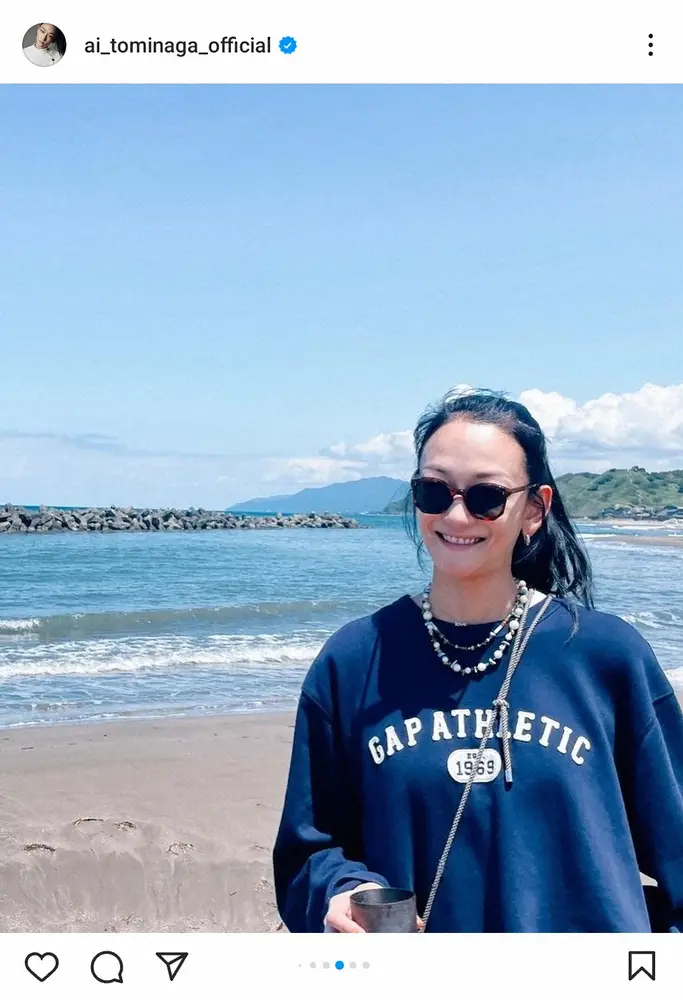 冨永は「新潟の海キャンプ」とコメント。「信じられないくらい綺麗な夕陽を沢山見れました」と、海辺での写真などを公開した。
