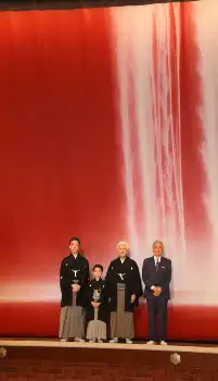 陽喜、夏幹は6月1日に初日を迎える「六月大歌舞伎」で初舞台を踏む。特別な舞台の引幕はビートたけし(77)が原画を担当した。子供たちの意見も取り入れて選んだ風神雷神をモチーフに27.573メートルの幅と高さ約6メートルの幕を存分に使い切った。この日はたけしからのメッセージも読み上げられ「これからの歌舞伎界を担っていくお2人及び皆さまの輝かしい未来を、心よりお慶び申し上げます」と祝いの言葉を寄せた。