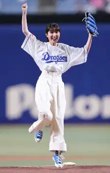 福本莉子 始球式で見事なノーバン投球! マウンドで飛び跳ねて喜ぶ姿に「ジャンプかわいい」の声