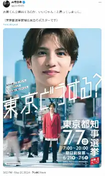 古市憲寿氏「志尊くん立候補するのか、いいじゃん!と思ってしまった」東京都選挙管理委員会のポスターに