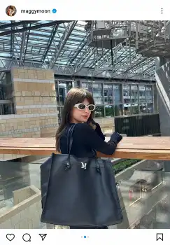 マギーは「今日はなんだかブラックな気分でした~」とコメント。「マルチェッラLという大きめの新しいサイズで、ばんばん何でも入れれて可愛いから最高!」とイタリアのブランドバッグについて伝え、全身を黒でまとめたコーディネートを披露した。