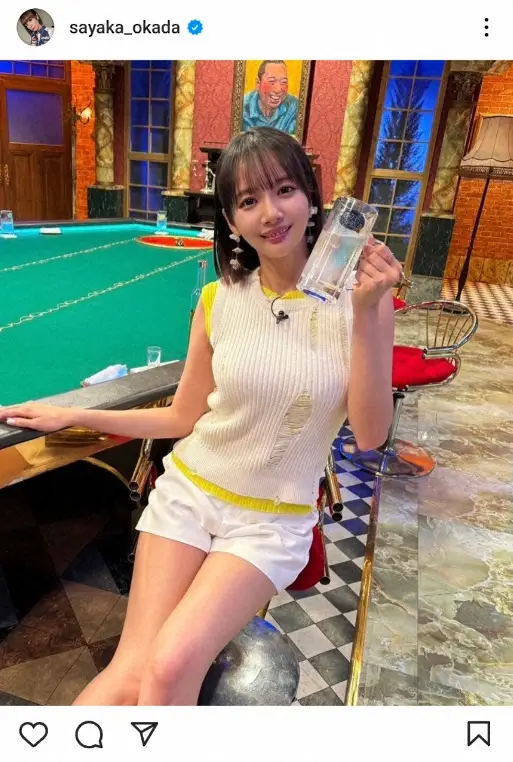 モデルでプロ雀士の岡田紗佳(30)が30日までに自身のインスタグラムを更新。ノースリーブ&生足での乾杯ショットを披露した。