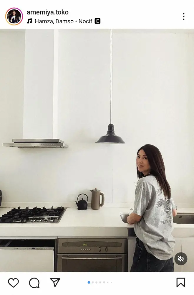 雨宮の投稿に、フォロワーからは「キッチンと塔子さんステキ」「1枚目の塔子さん 日常のワンシーン最高です。音楽は時間を越えて、心を豊かにしてくれますね。ジーンズ塔子は無敵です」といった反響が寄せられている。