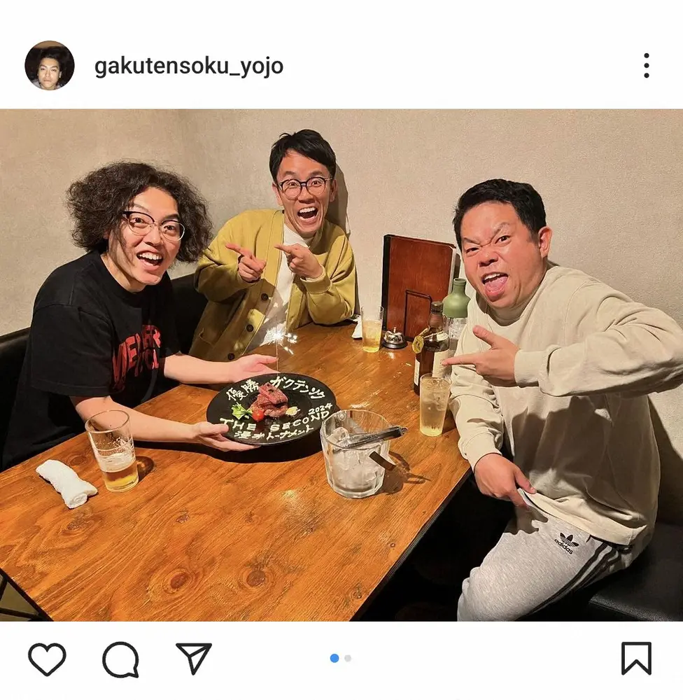 ザ セカンド優勝のガクテンソク・よじょう 「大将に祝勝会をしてもらいました」人気お笑い芸人が祝福