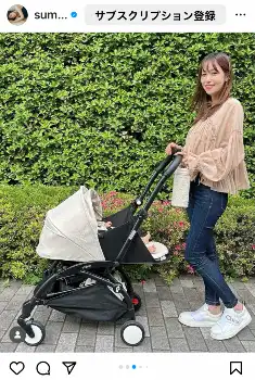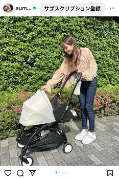 「ベビーカーは妊娠中からめちゃくちゃ調べまくっていたので、もうプレゼンできるレベルだと思ってます」と自信満々。「yoyo2は、バスやタクシー、新幹線、飛行機など、公共交通機関によく乗る人には特にオススメなベビーカー!なんと機内持ち込みもできるんですって!!(航空会社によって基準が異なり、できないところもあるようです)いつか子連れ旅行も行きたいなぁ」と記した。