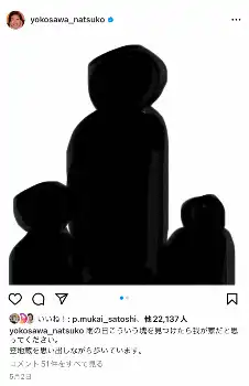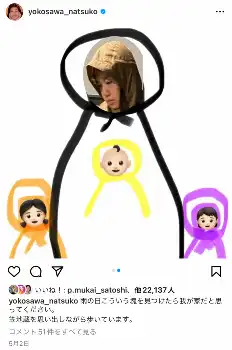 同じくMCを務めるタレントの藤本美貴から「なっちゃん、インスタでさ、これ怖いよね。ゴミ袋かと思っちゃった」と話題に上げたのは、ある日の横澤のインスタグラムの投稿。そこには大人と子供2人の黒いシルエットが描かれていた。横澤は「“このシルエットを見つけたらウチだと思ってください”っていうことなんですけど」と説明。藤本も「こうなるよねー」と共感した。