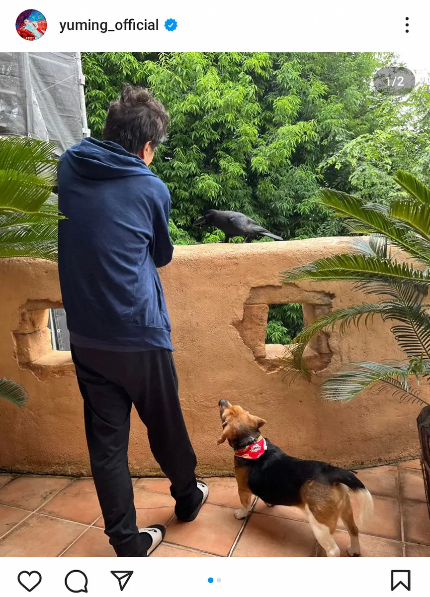 松任谷は「寝起き。」の一言とともに、夫の音楽プロデューサー、松任谷正隆氏(72)の後ろ姿のショットを投稿。正隆氏はリラックスしたパーカ姿で自宅のテラスにたたずみ、傍らには愛犬ロイくんの姿が。視線の先にはテラスにやって来た一羽のカラスがいて、まるで正隆氏、ロイくんにあいさつをしているかのようだ。