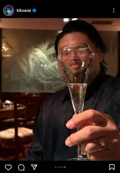 その他「34」の数字をかたどった風船を手に真顔の稲垣や、誕生日ケーキを囲むツーショットなどを投稿。中でもグラス越しに稲垣を撮影した一枚は、光の屈折でまるで笑顔を浮かべているような“笑撃”のショットだった。