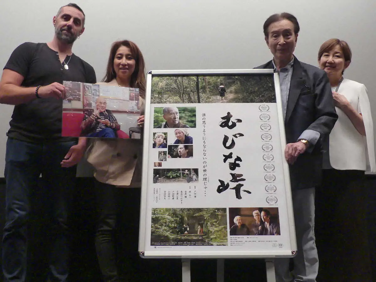 俳優の林与一(82)が主演した映画「むじな峠」(監督戸田博)の公開記念舞台あいさつが2日、東京・キネマ大森で行われ、林はじめ共演の若原瞳(70)、長谷川かずき(50)らが駆けつけた。